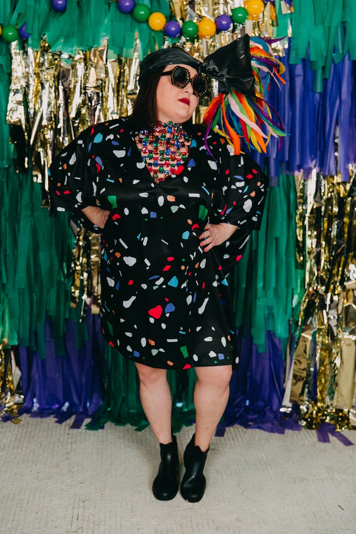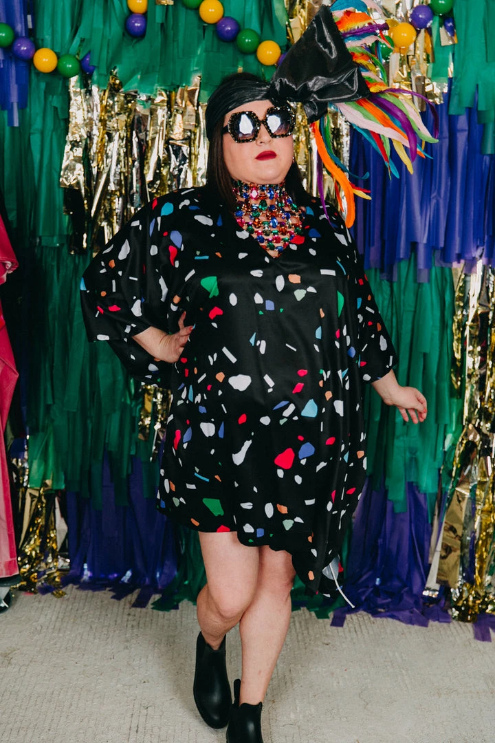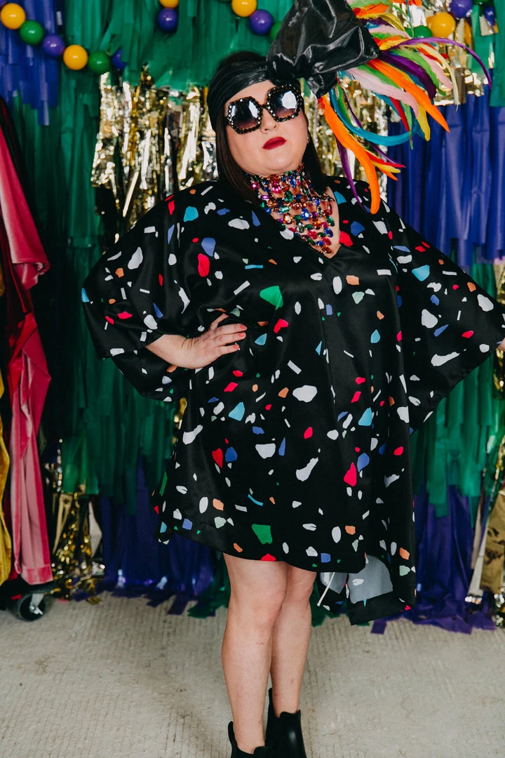 Black confetti short caftan.Â