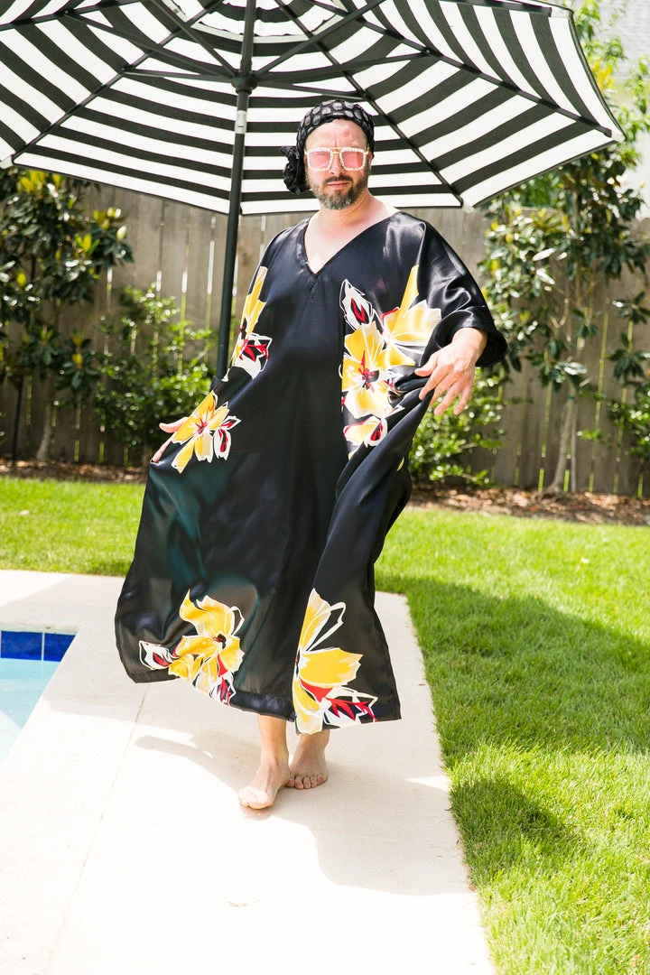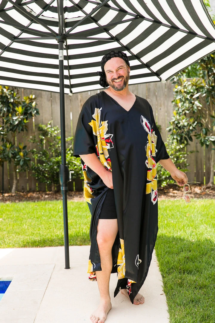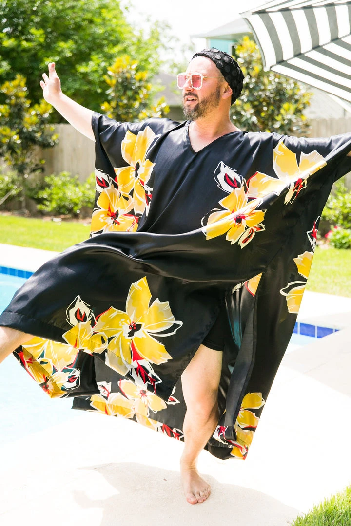 Fringe Co Black And White Floral Chiffon Short Caftan Caftan Club Collection