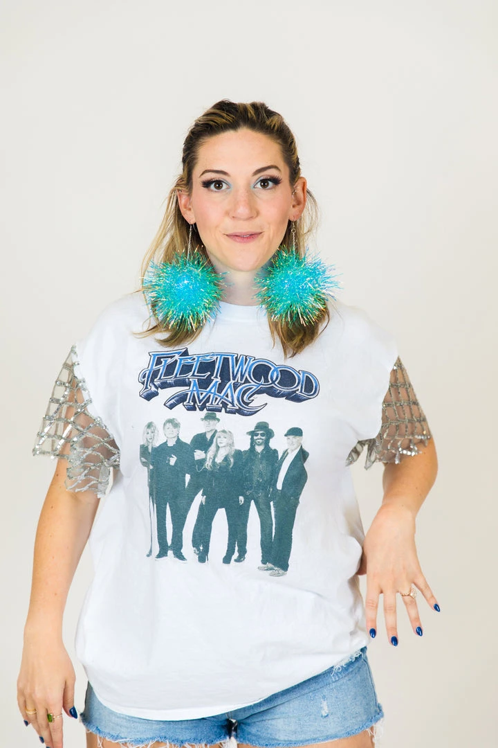 Blue Iridescent Party Pom Pom earrings. Blue iridescent tinsel earrings- put a party on your ear!