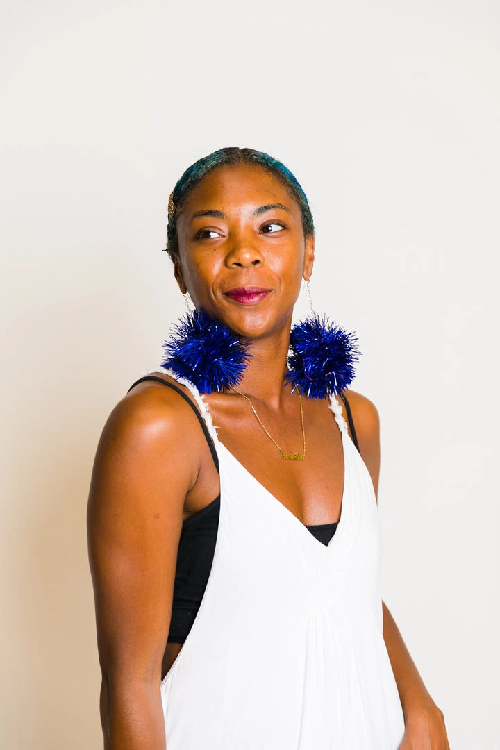 Blue Party Pom Pom earrings. Put a party on your ear!