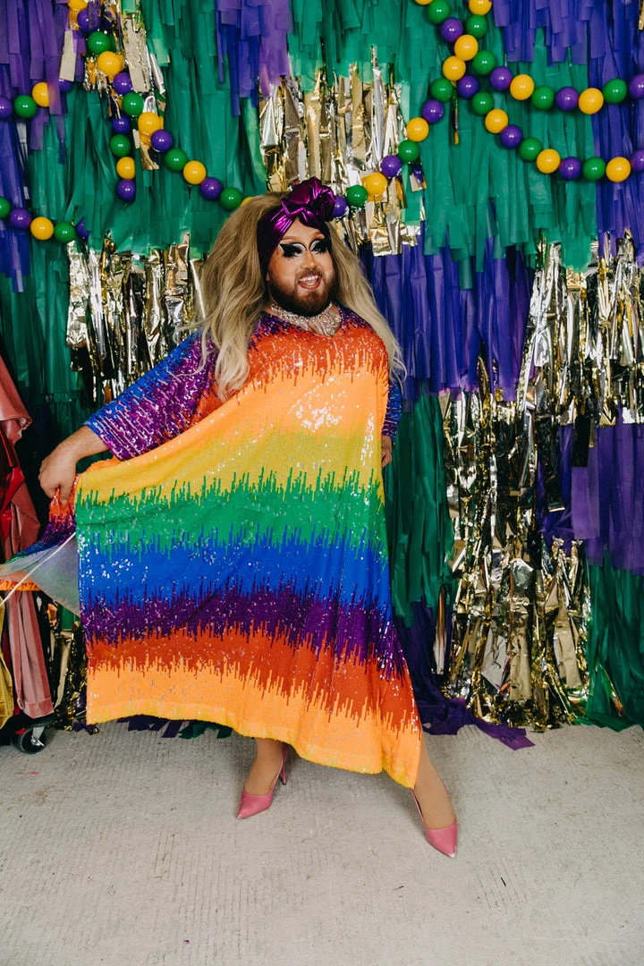 Fringe Co Rainbow Stripe Sequin Short Caftan Caftan Club Collection