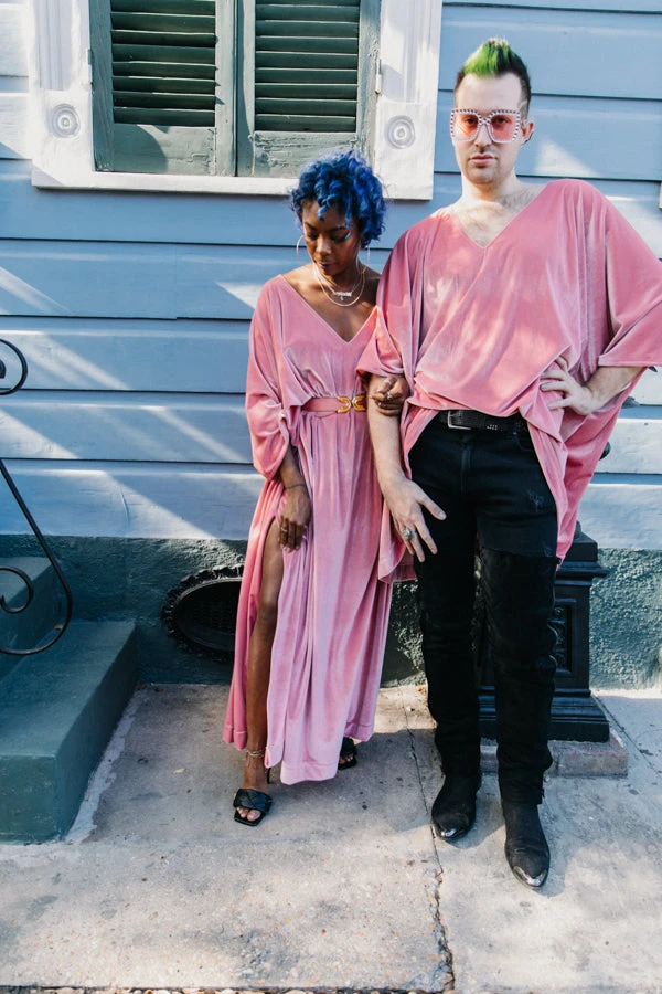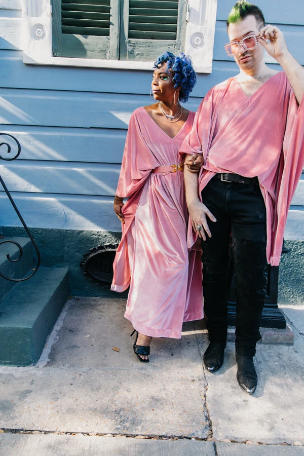 Light pink velvet long caftan.Â