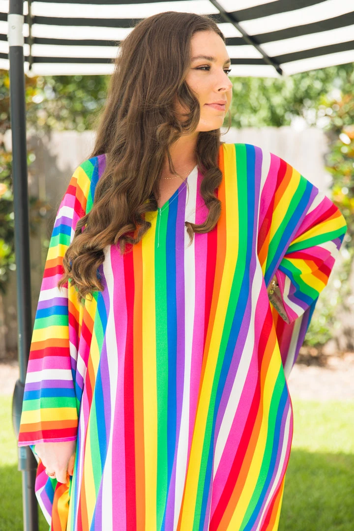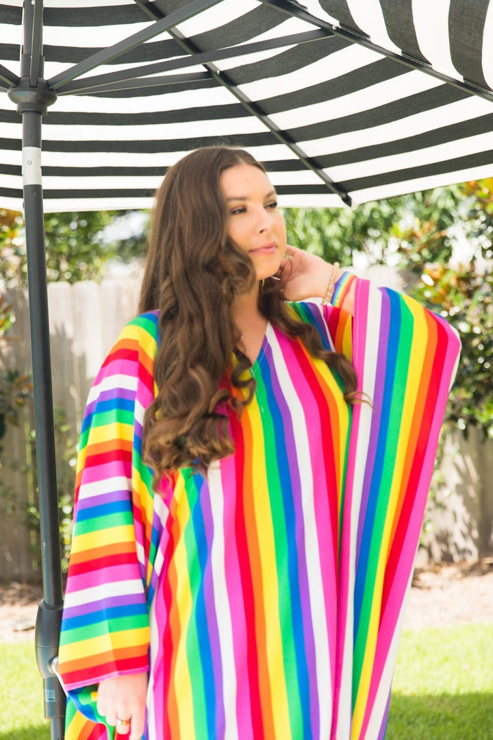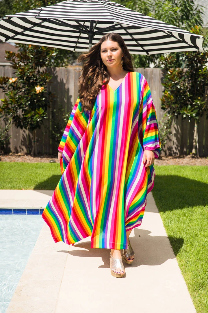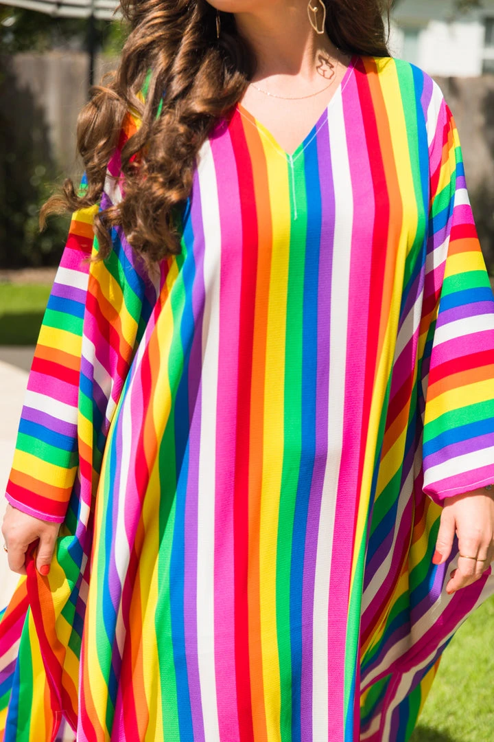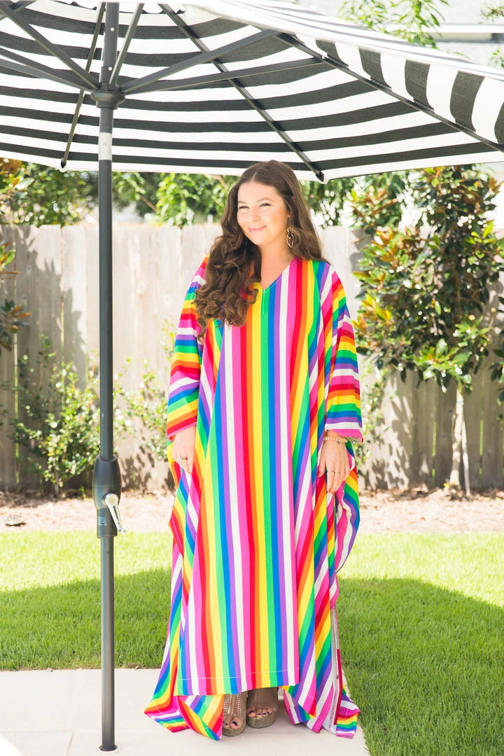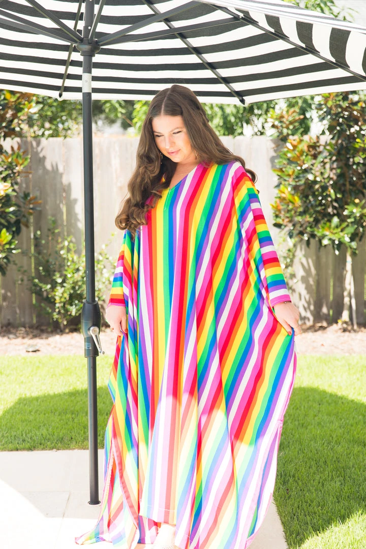 Rainbow stipe chiffon long caftan.Â