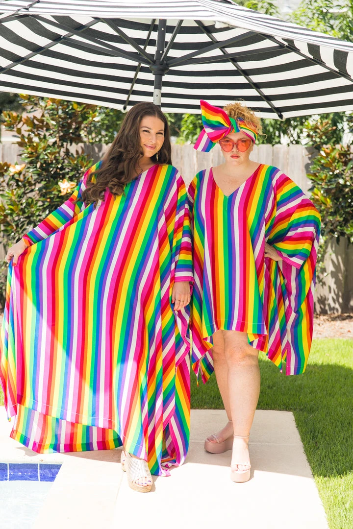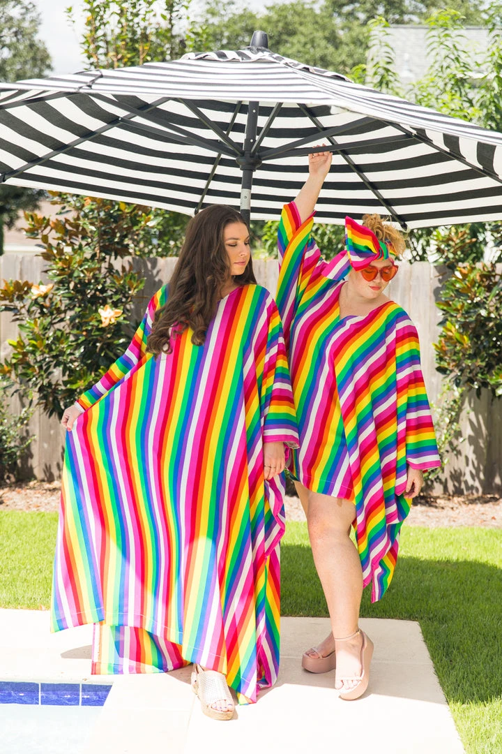 Fringe Co Rainbow Tie Dye Stripe Long Caftan Caftan Club Collection