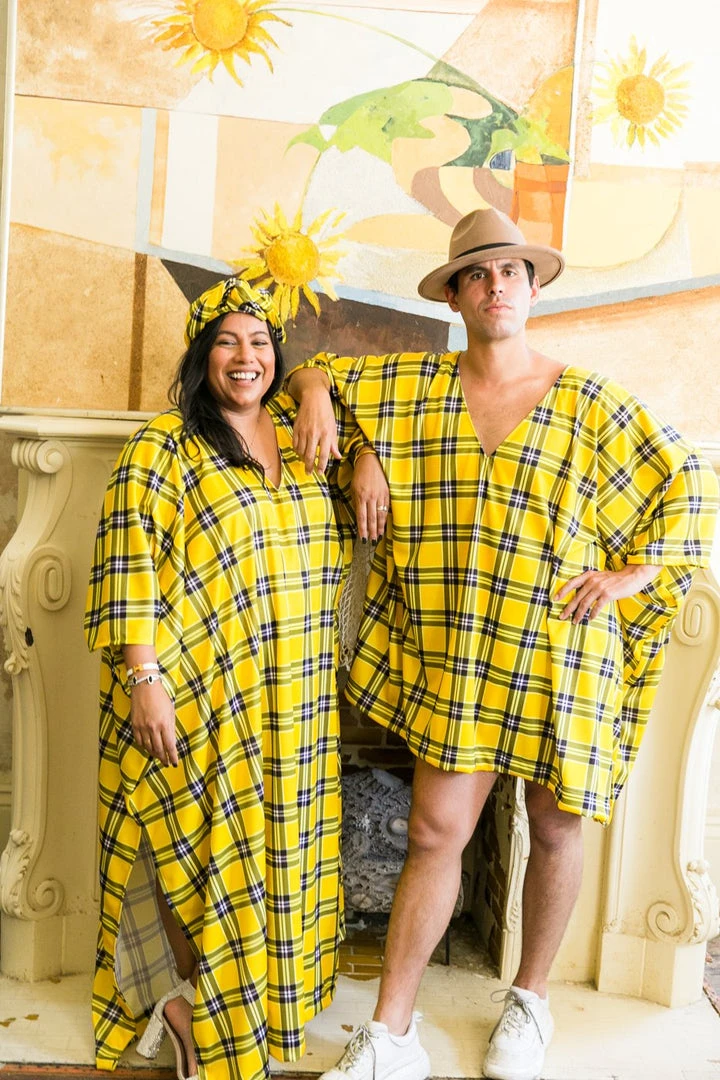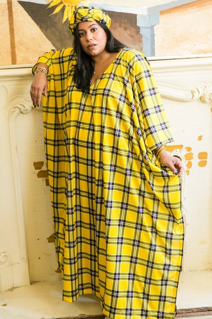 Yellow plaid long caftan.