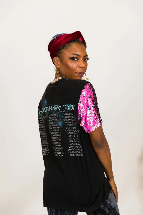 Fringe Co Party Tees Tupac Pink And Black Sequin Sleeve Party Tee