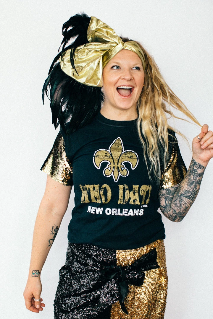 Fringe Co New Orleans Saints Champagne Gold Sequin Sleeve Party Tee