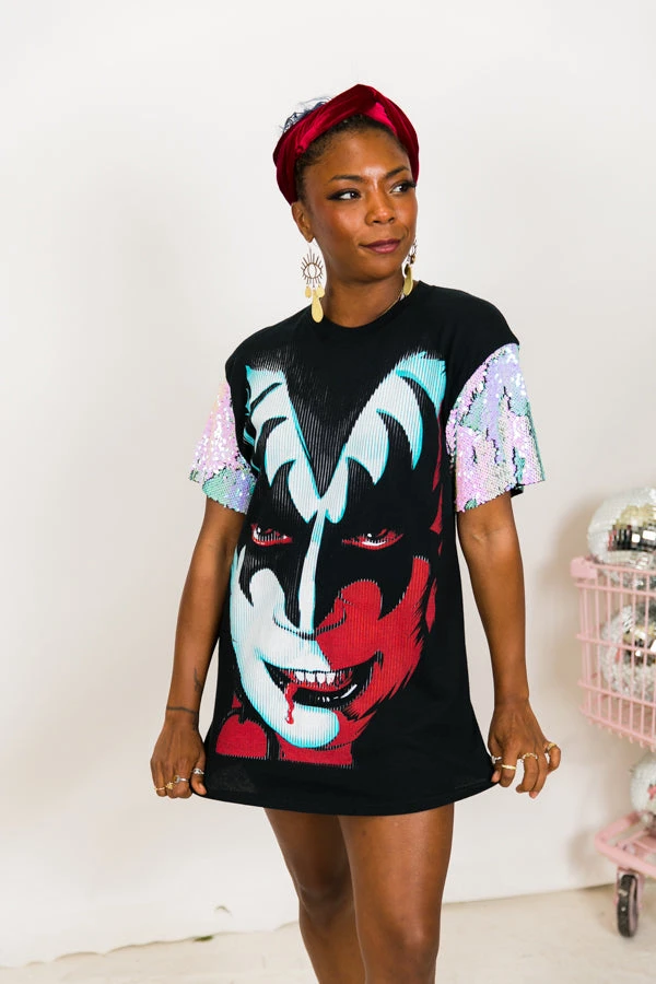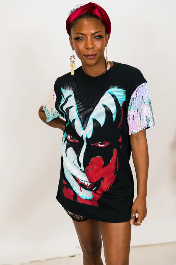 Our party tee  – Kiss iridescent sequin party tee. T-shirt is made of cotton.Â