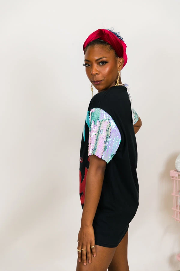 Fringe Co Party Tees Tupac Pink And Black Sequin Sleeve Party Tee