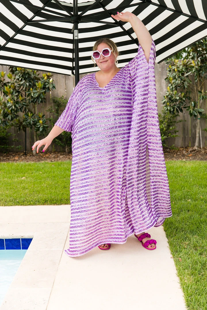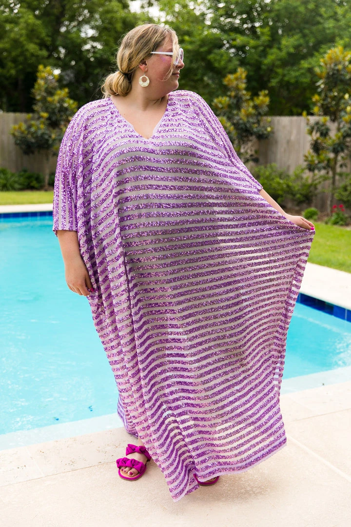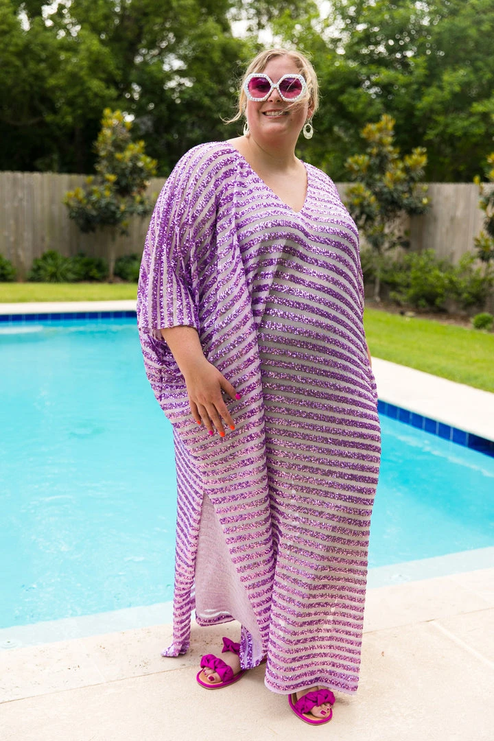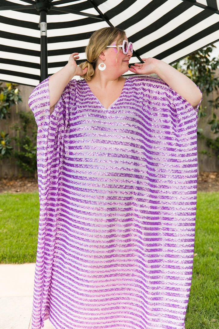 Lavender sequin stripe long caftan.
