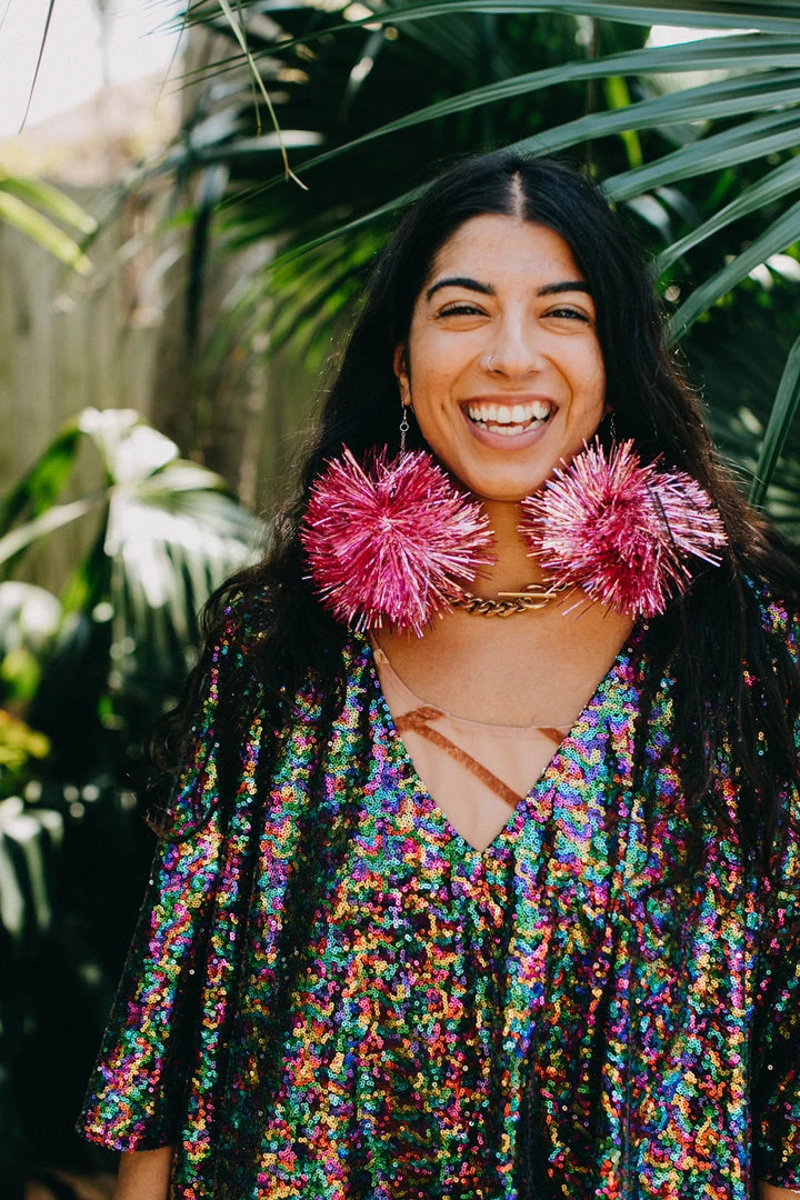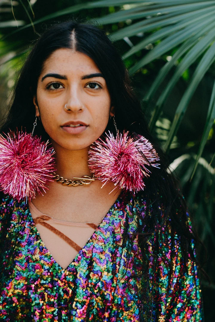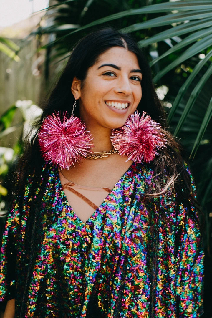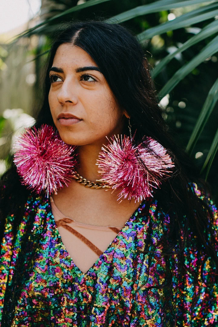 Light pink Party Pom Pom earrings. Pinktinsel earrings- put a party on your ear!