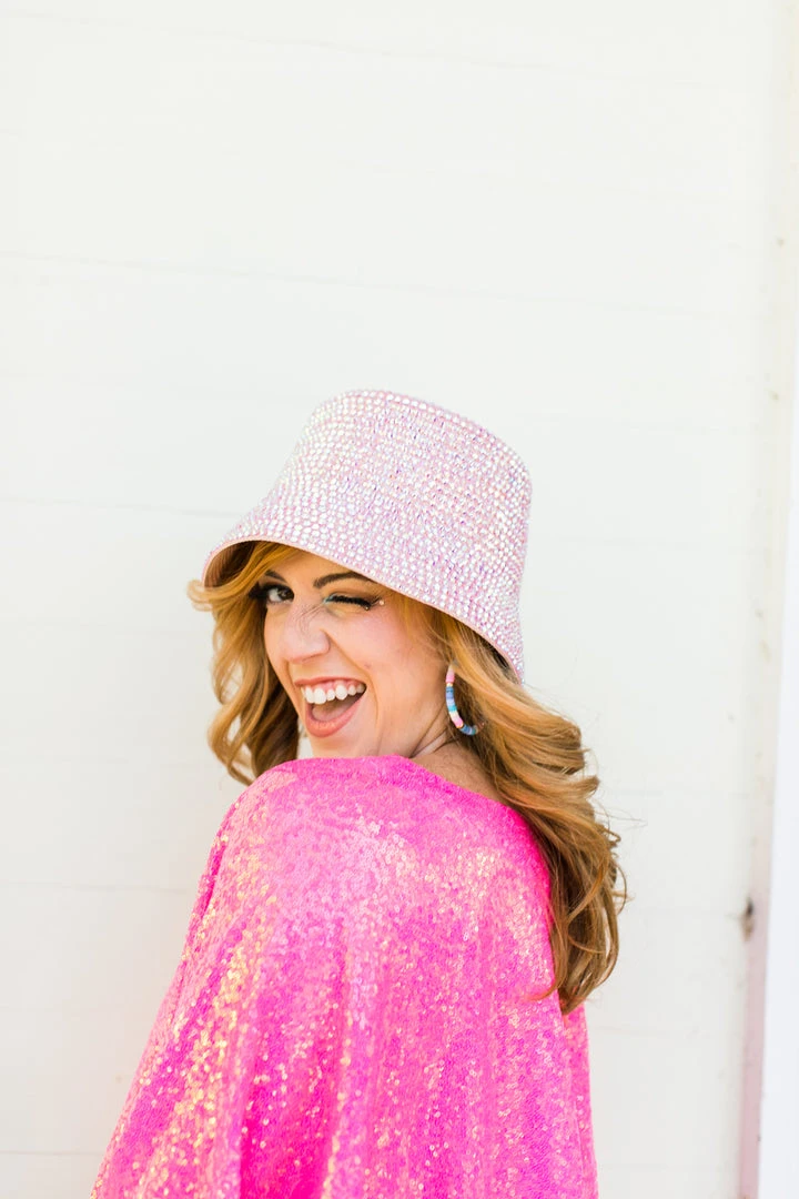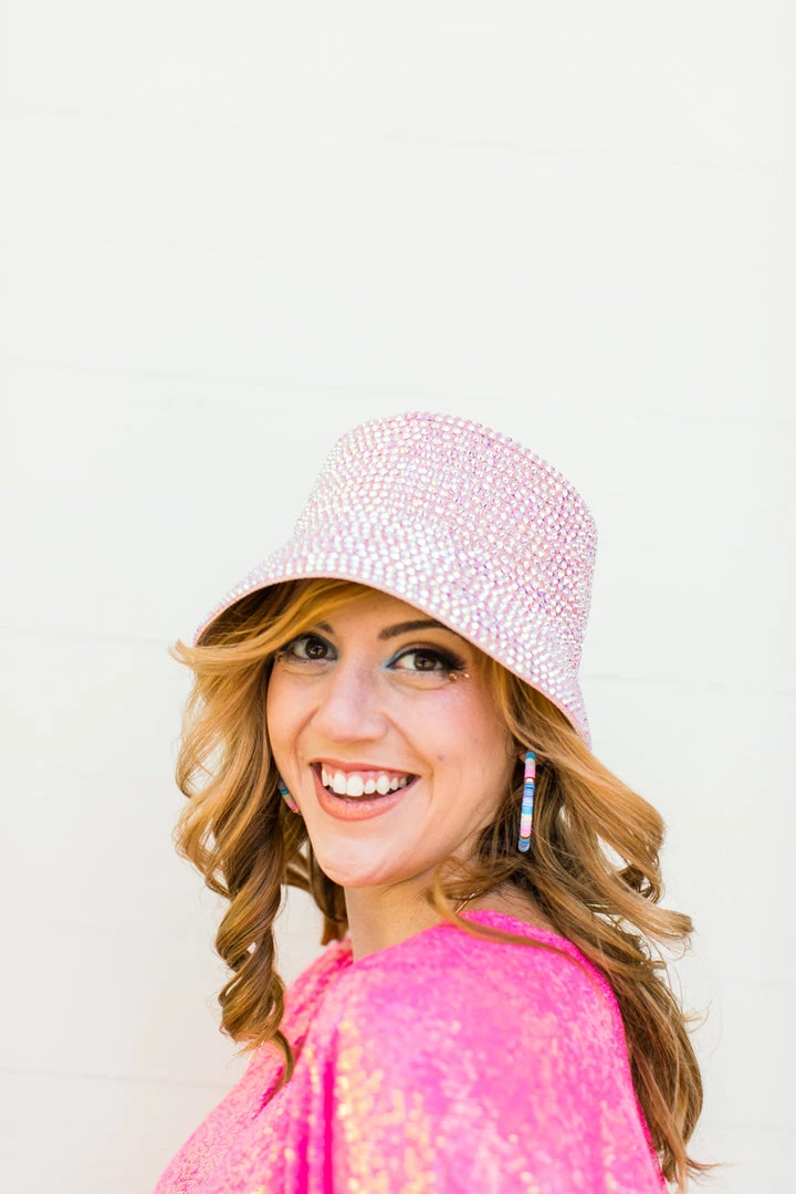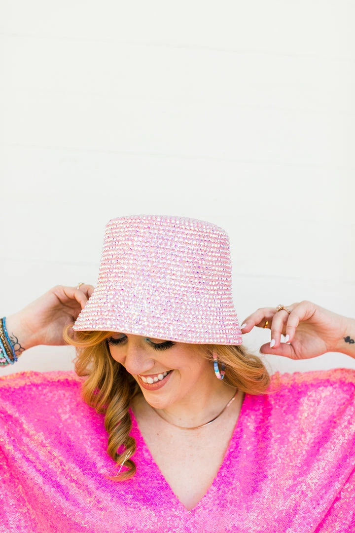 Light pink rhinestone bucket hat.