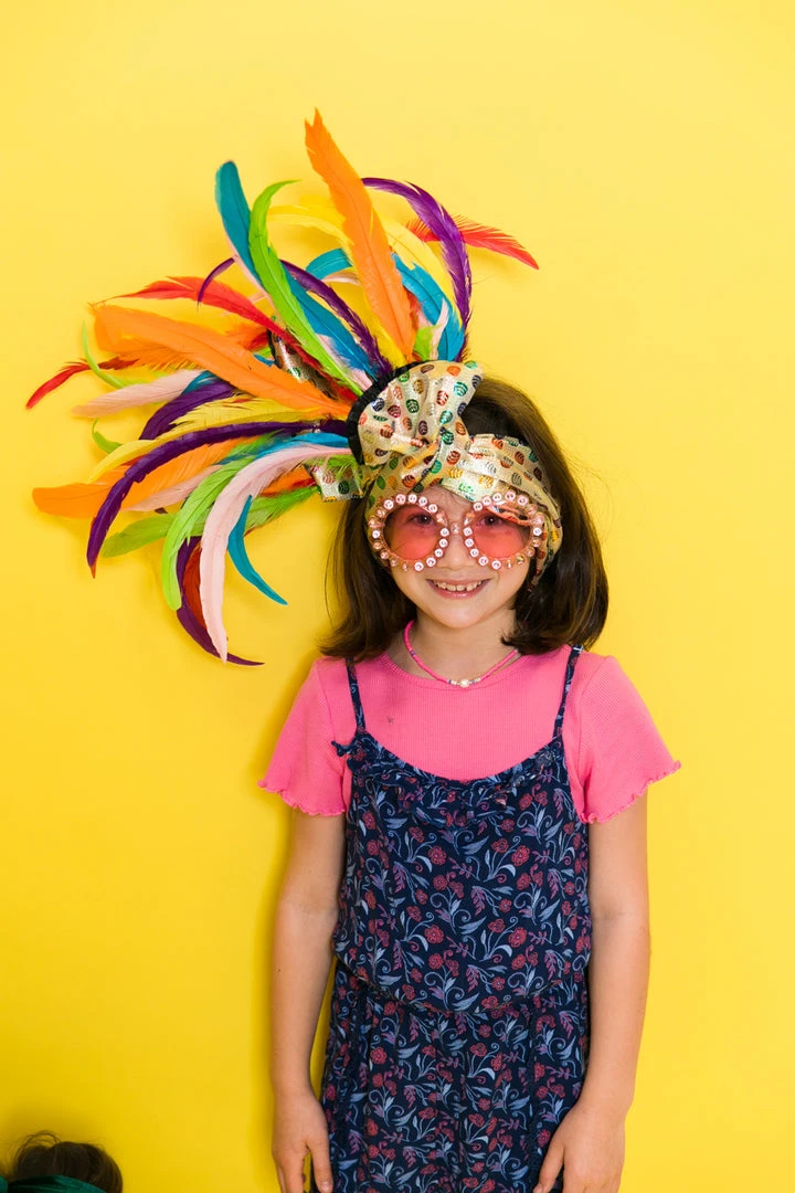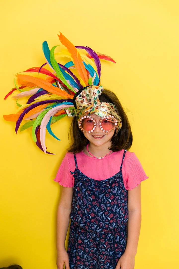 Our mini wrap  – made in metallic polka dot with rainbow feathers. Adjustable wire for versatility of use and design. Please note adults can wear these, they will be smaller than our regular wraps but still fit adults.