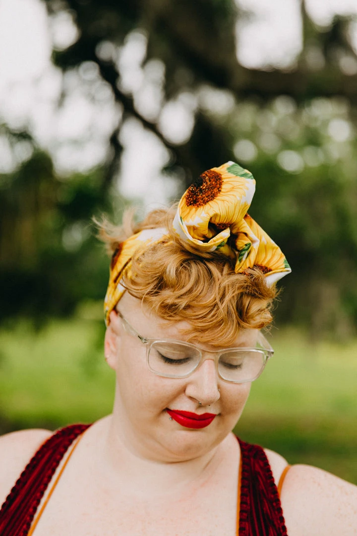Our mini wrap  – made in yellow sunflower cotton fabric