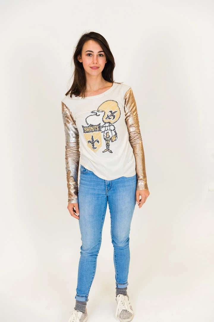 Our party tee -New Orleans Saints Champagne Sequin Sleeve Party Tee