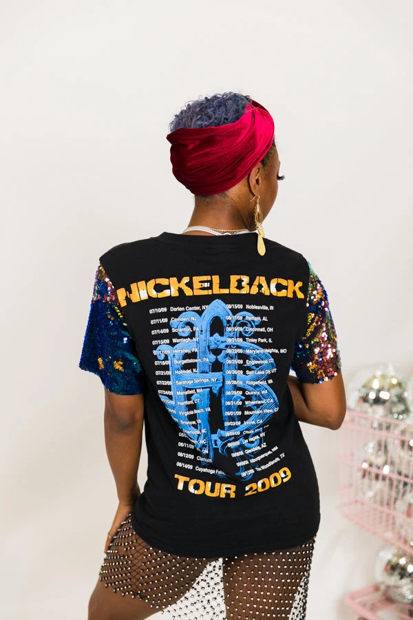 Our party tee  – Nickleback blue sequin party tee. T-shirt is made of cotton.Â