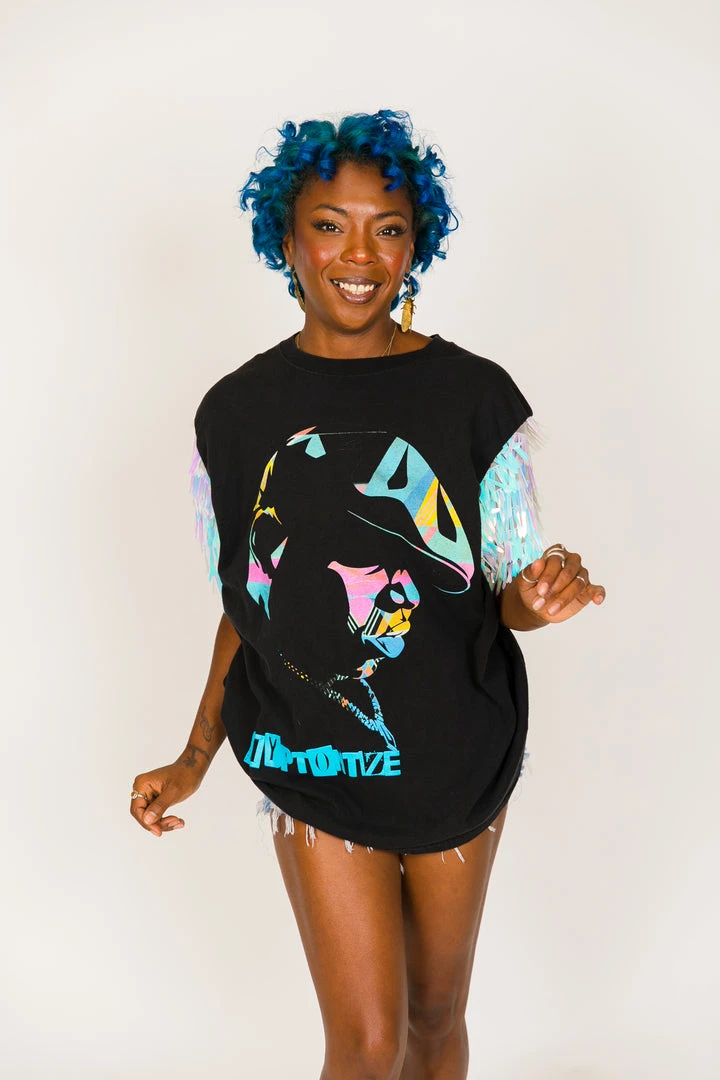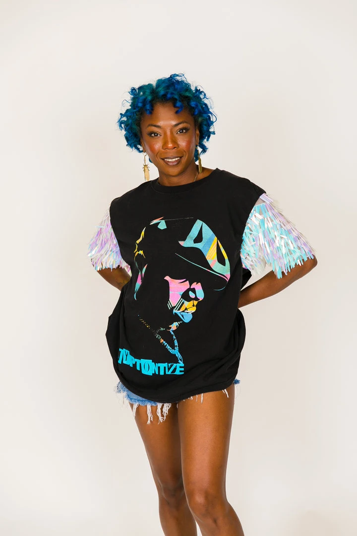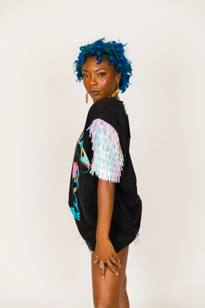 Fringe Co Party Tees Tupac Pink And Black Sequin Sleeve Party Tee