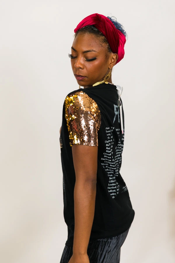 Fringe Co Who Dat Nation Black And Gold Sequin Sleeve Party Tee