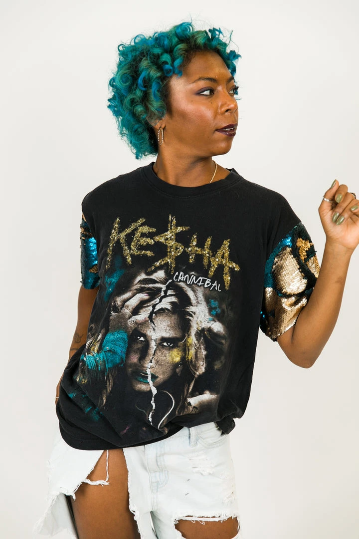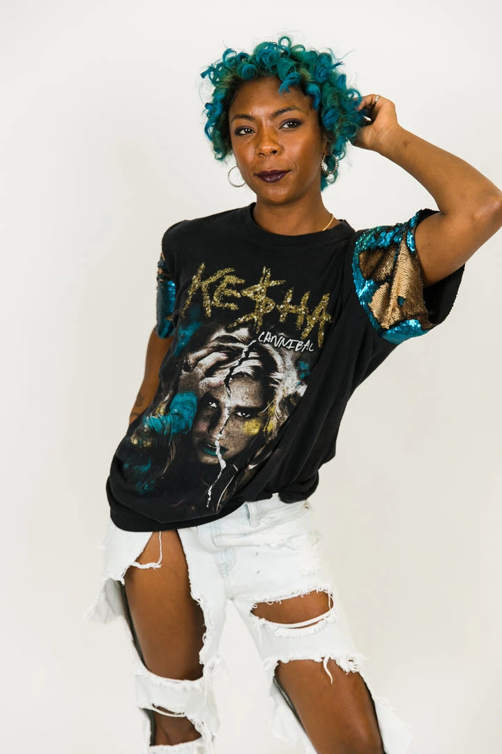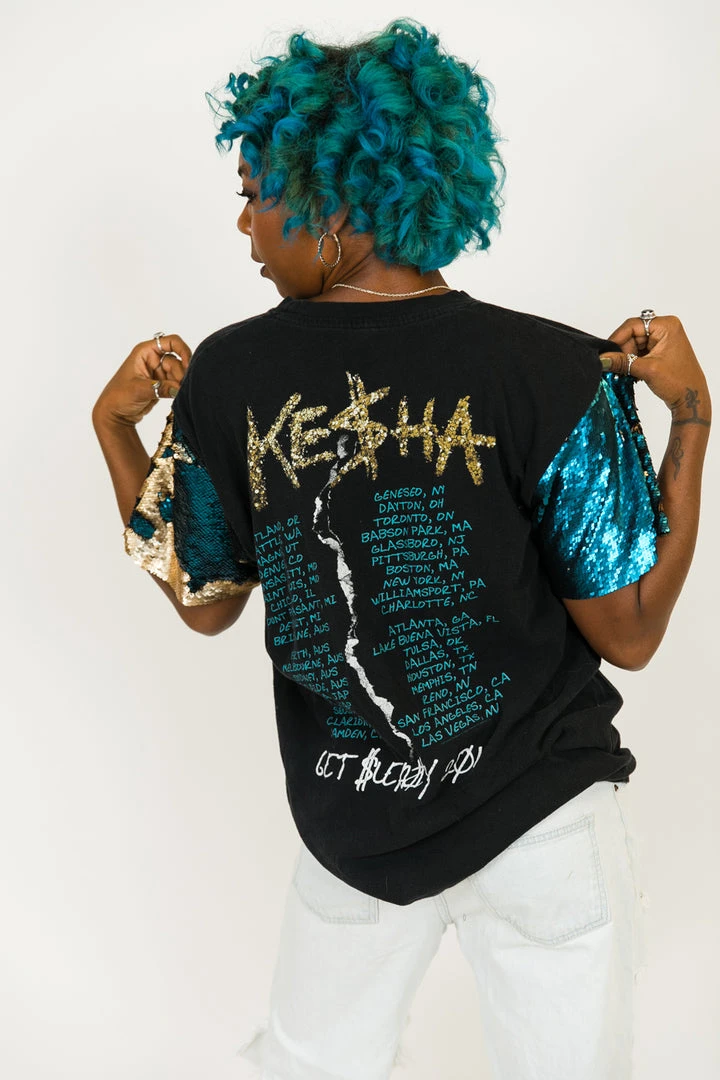 Our party tee – Kesha blue and gold sequin party tee. T-shirt is made of cotton.