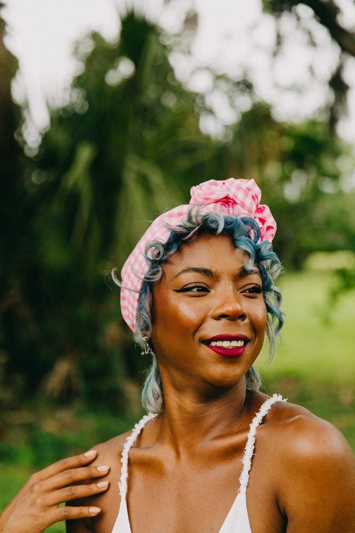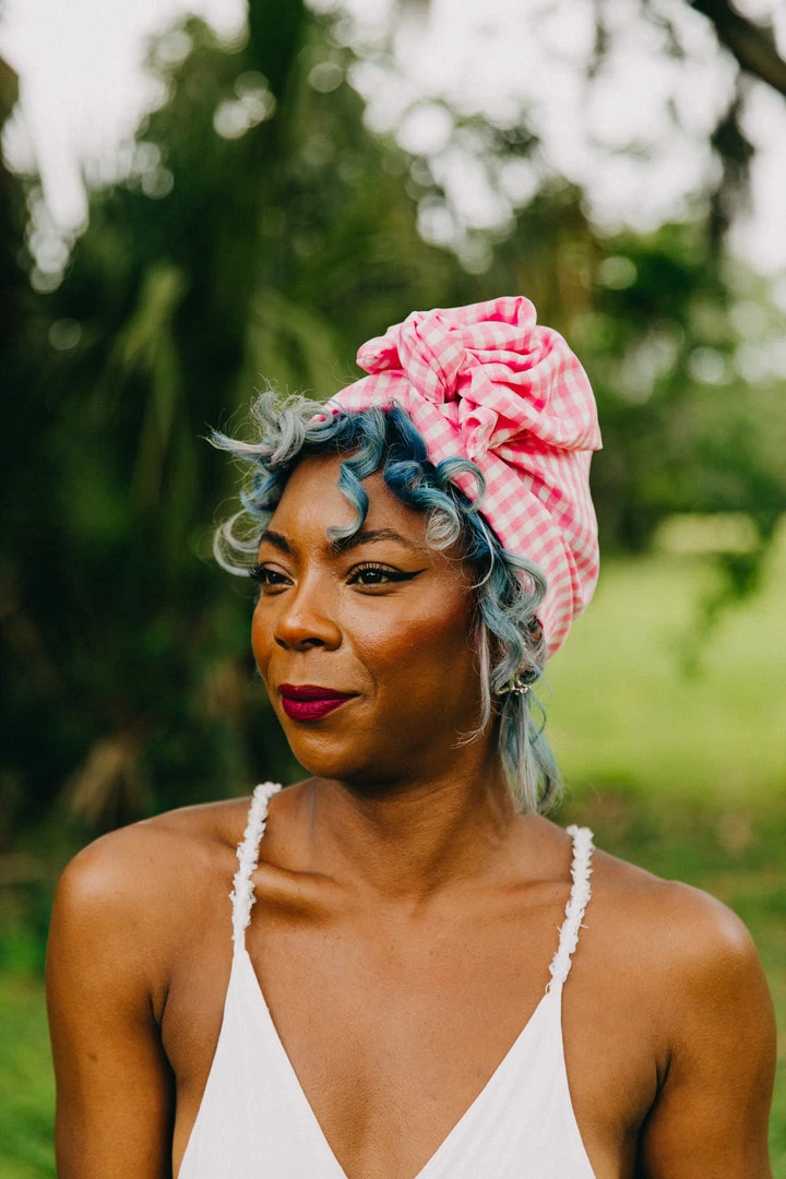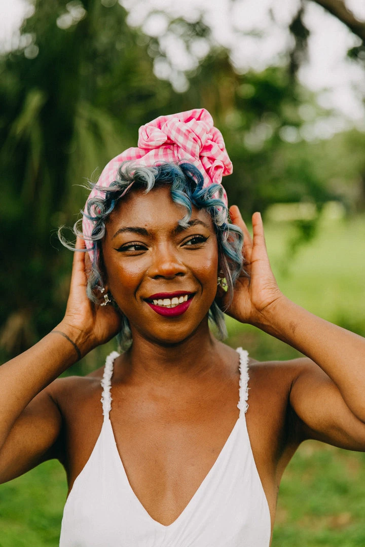 Our classic wrap  – made in pink gingham.Â