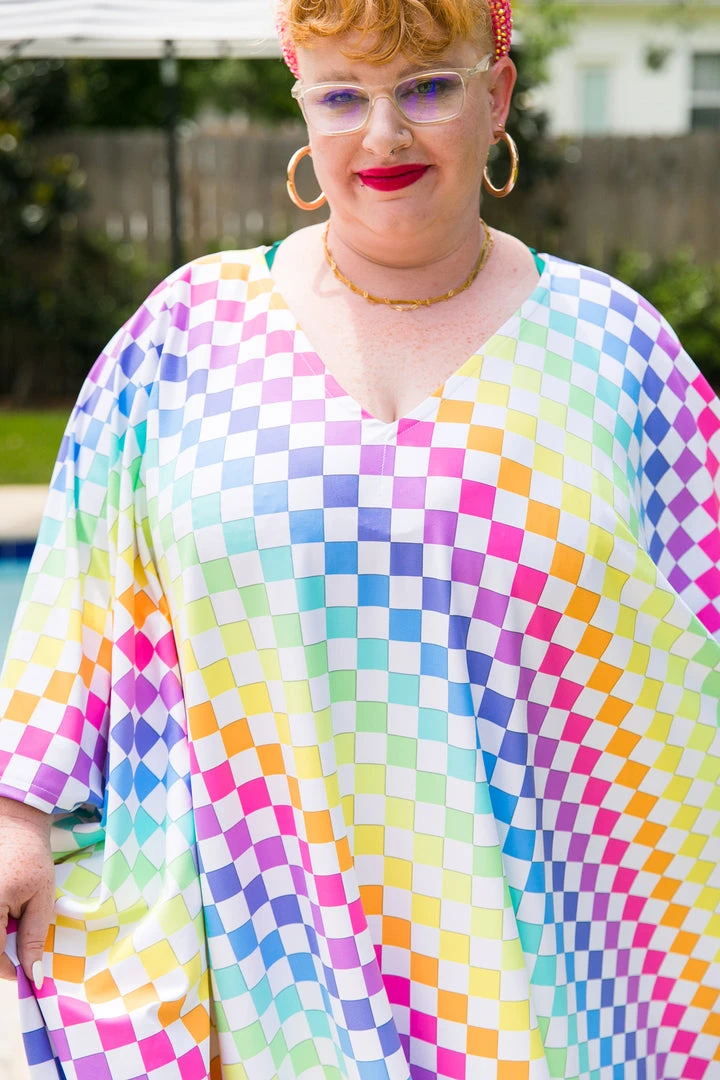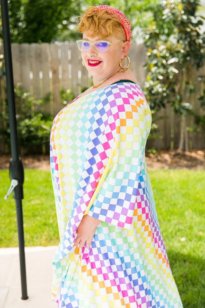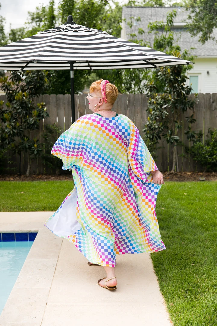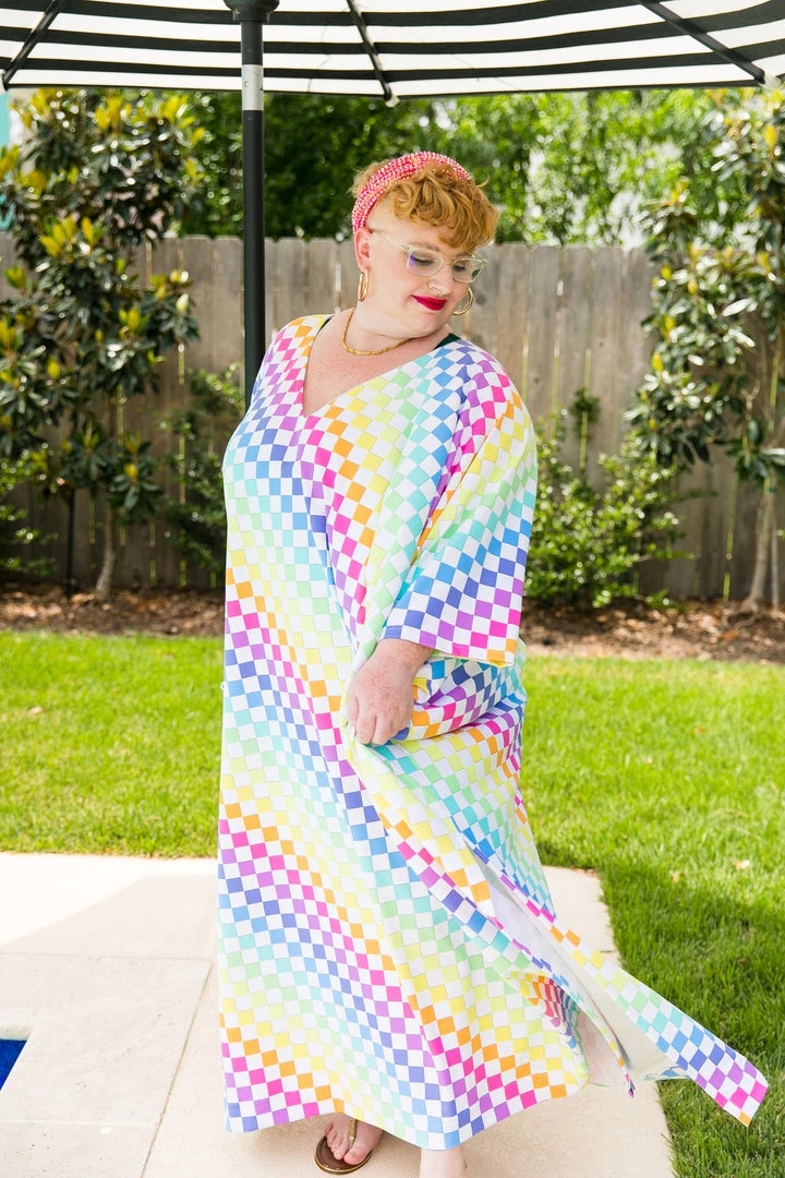 Rainbow check long caftan.Â