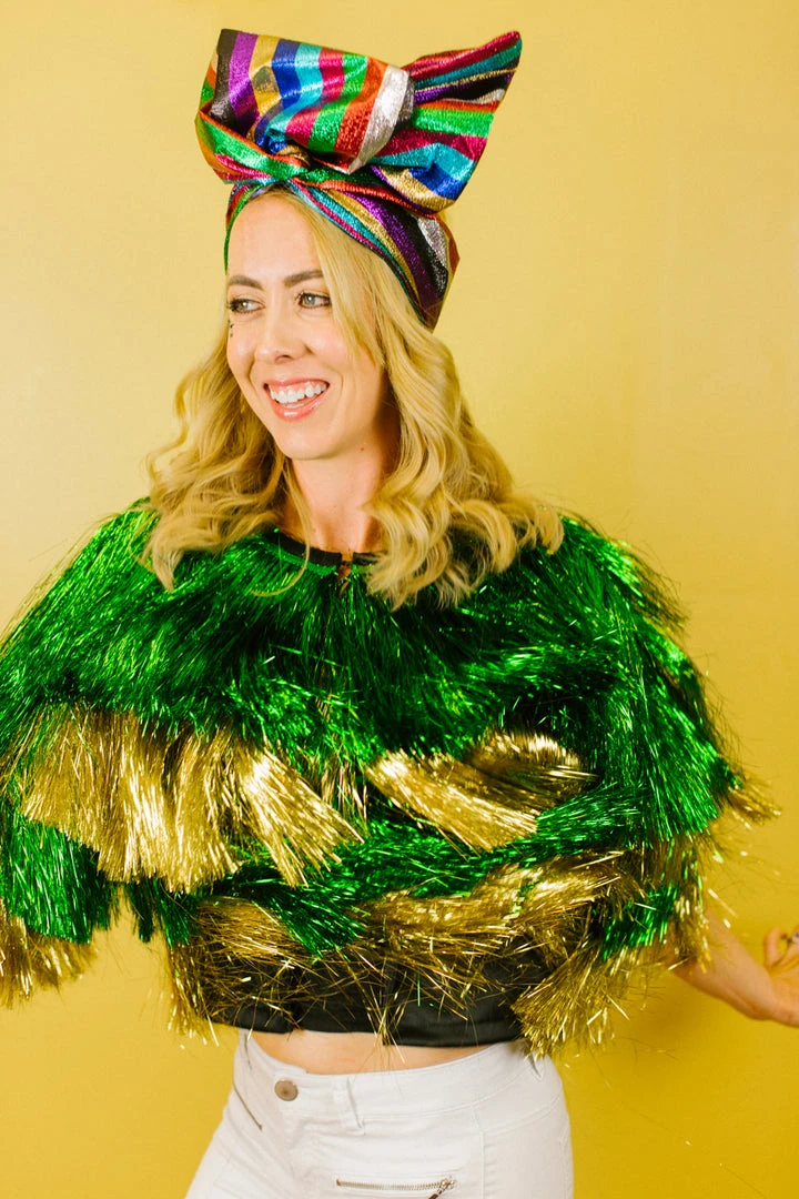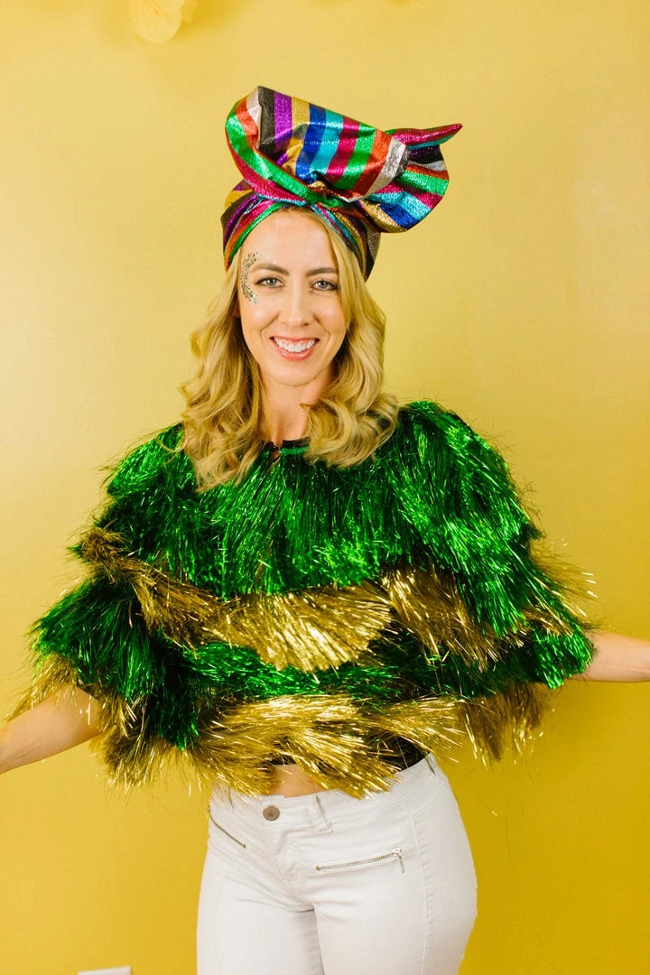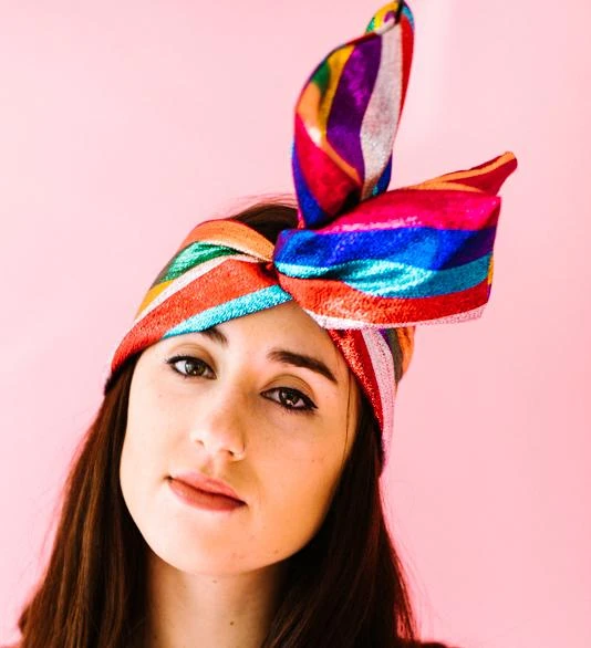 Our classic wrap – made in Rainbow Metallic Stripe. Adjustable wire for versatility of use and design.
