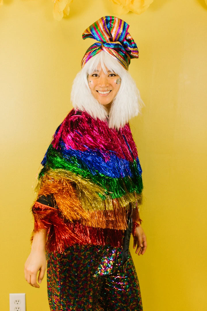 Our classic head wrap – made in Rainbow Metallic Stripe. Adjustable wire for versatility of use and design.