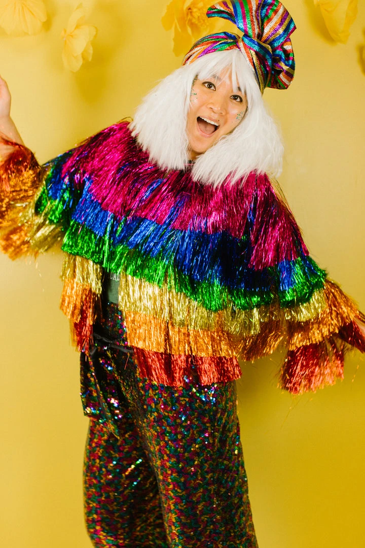 Fringe Co Caftan Club Collection Firecracker Rainbow Sequin Long Caftan