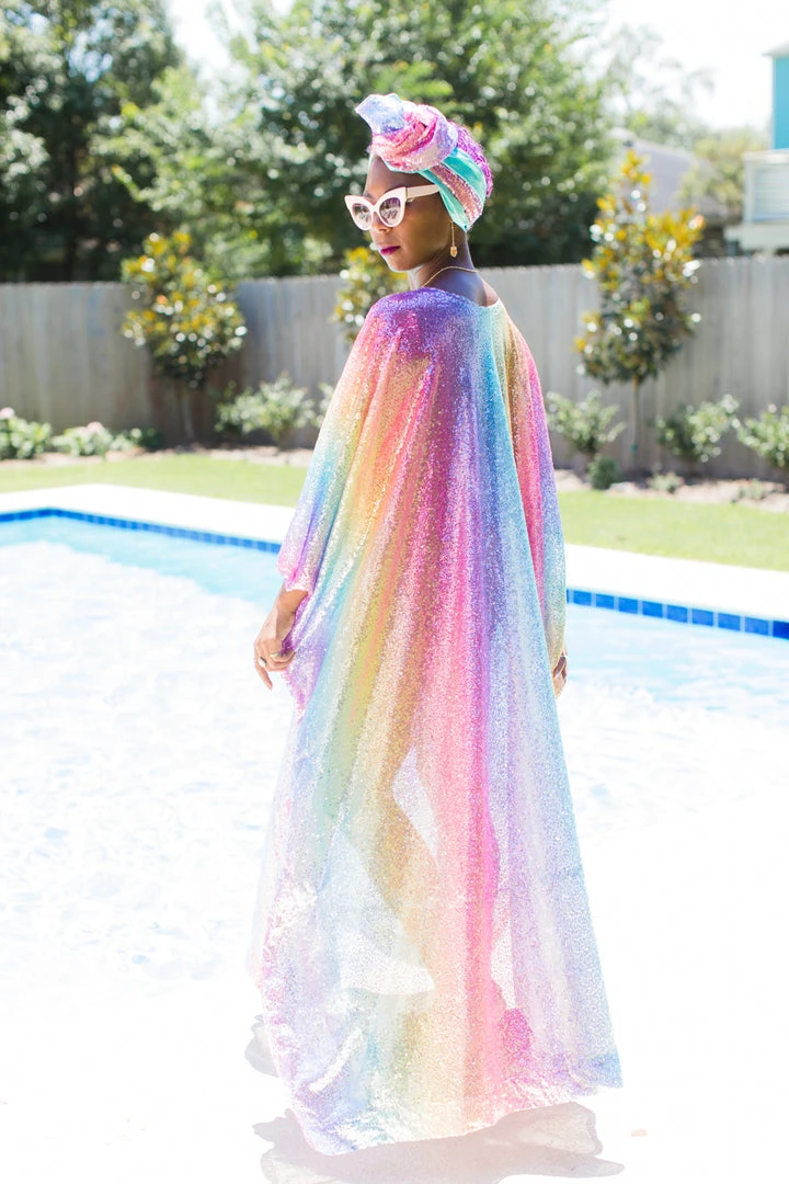 Fringe Co Caftan Club Collection Rainbow Stripe Sequin Long Caftan