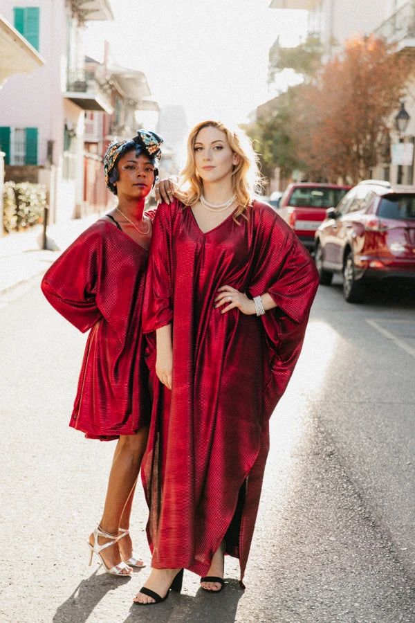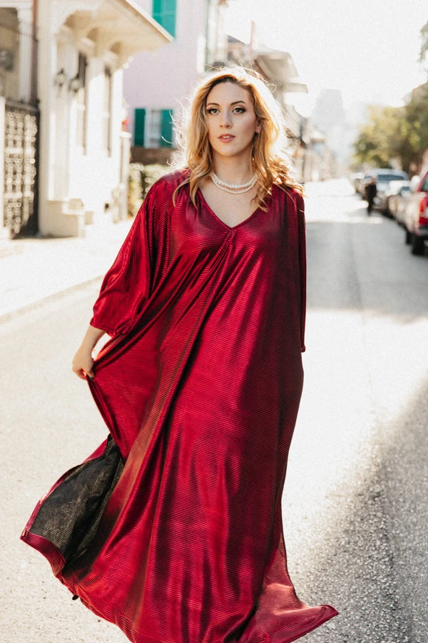Red metallic lame long caftan.