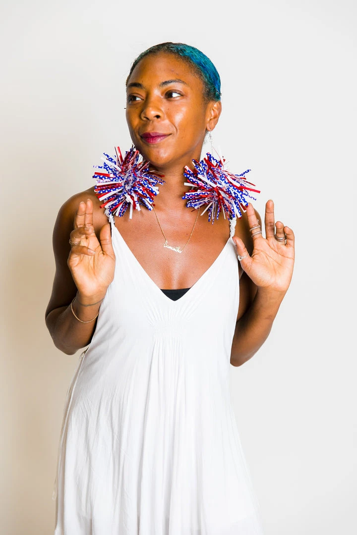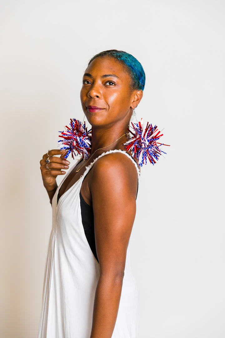 Red white and blue Party Pom Pom earrings. Put a party on your ear!