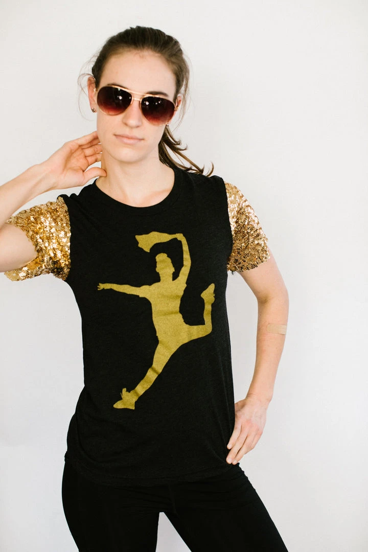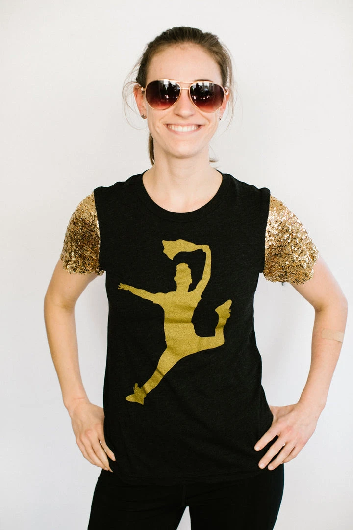 Fringe Co Party Collection Dome Sweet Dome Saints Gold And Black Sequin Sleeve Party Tee