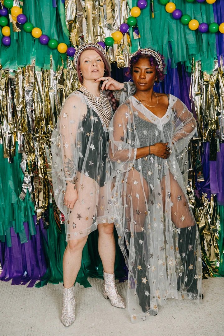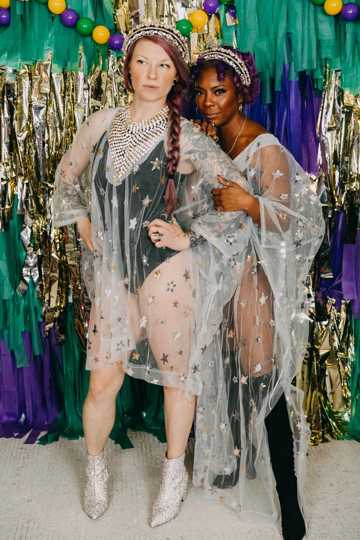 Sheer sequin star short caftan.Â