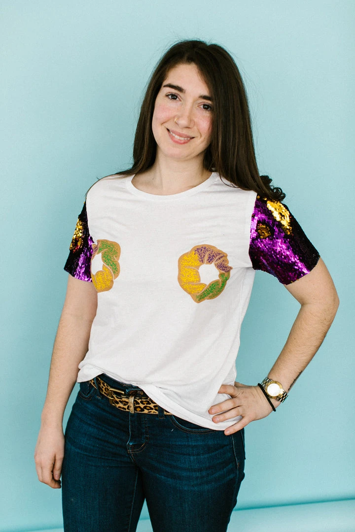 Fringe Co Dirty Coast Gold Sequin Sleeve Party Tee Party Collection
