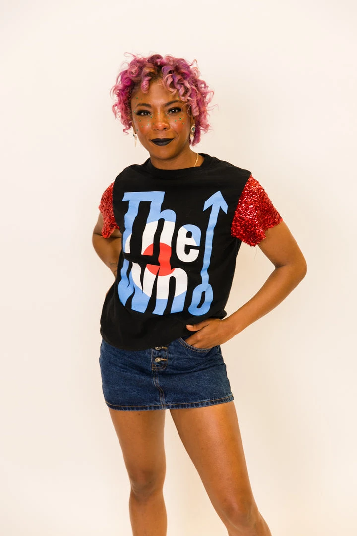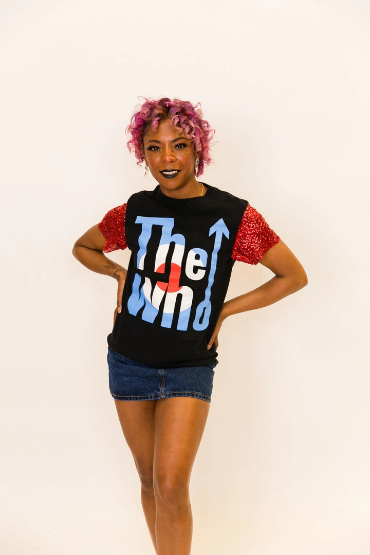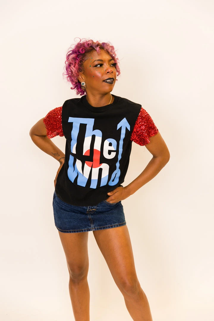 Our one of a kind party tee  -The Who red sequin party tee. T-shirt is made of cotton.Â