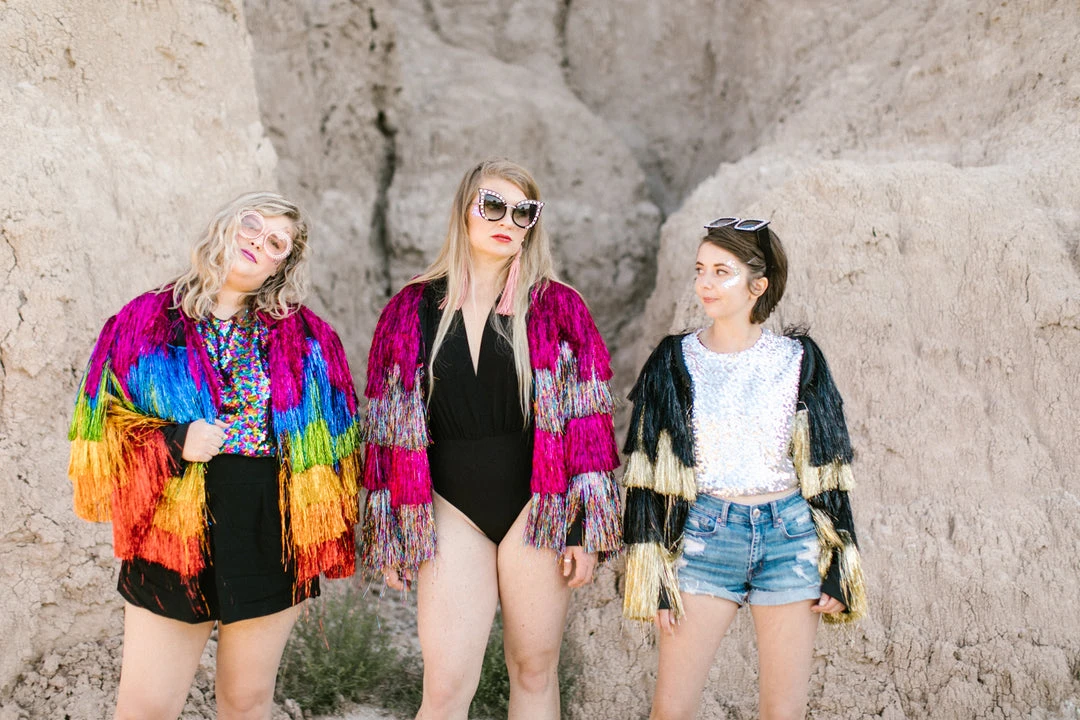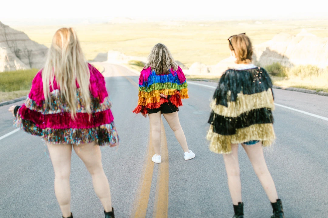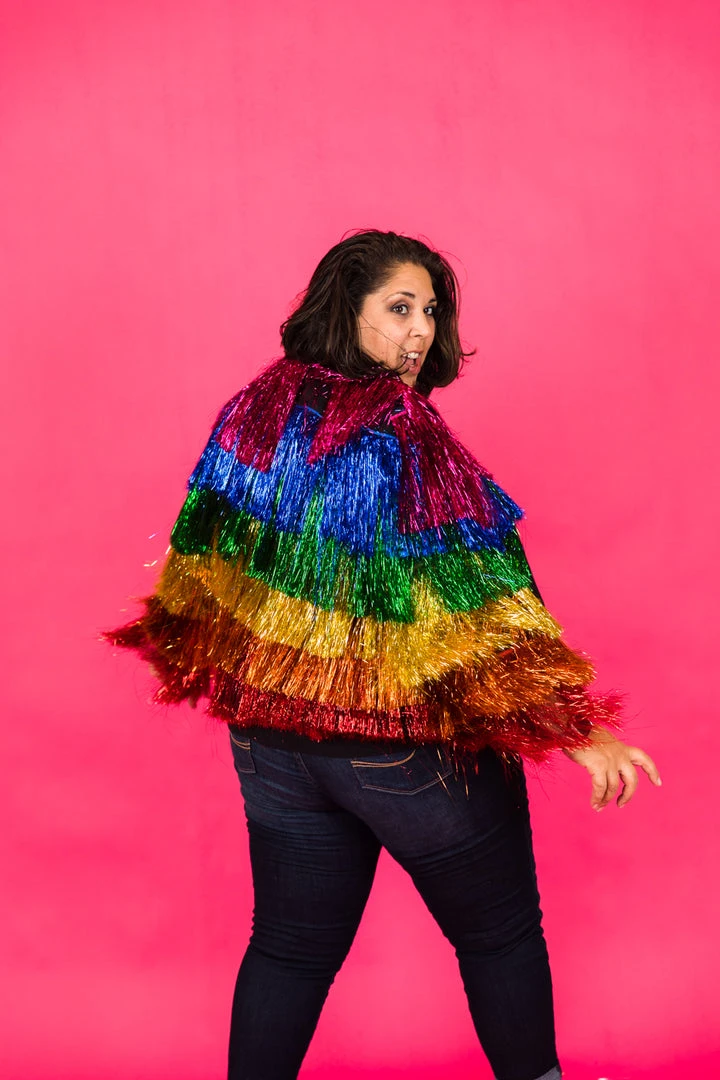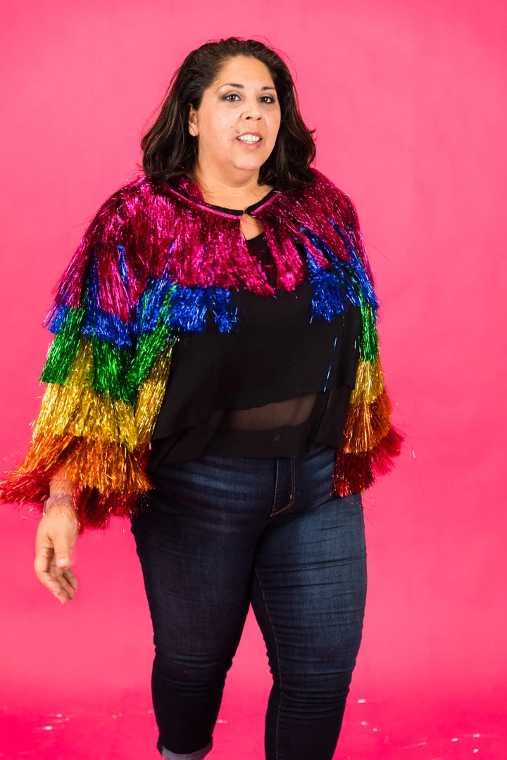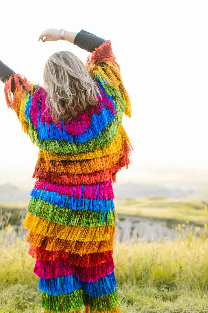 Rainbow metallic tinsel jacket. The Rebel is always ready to skirt the rules and crash a party. Â