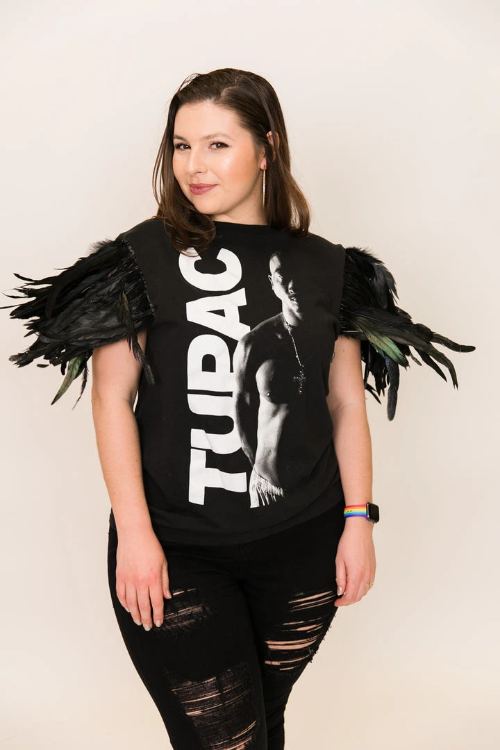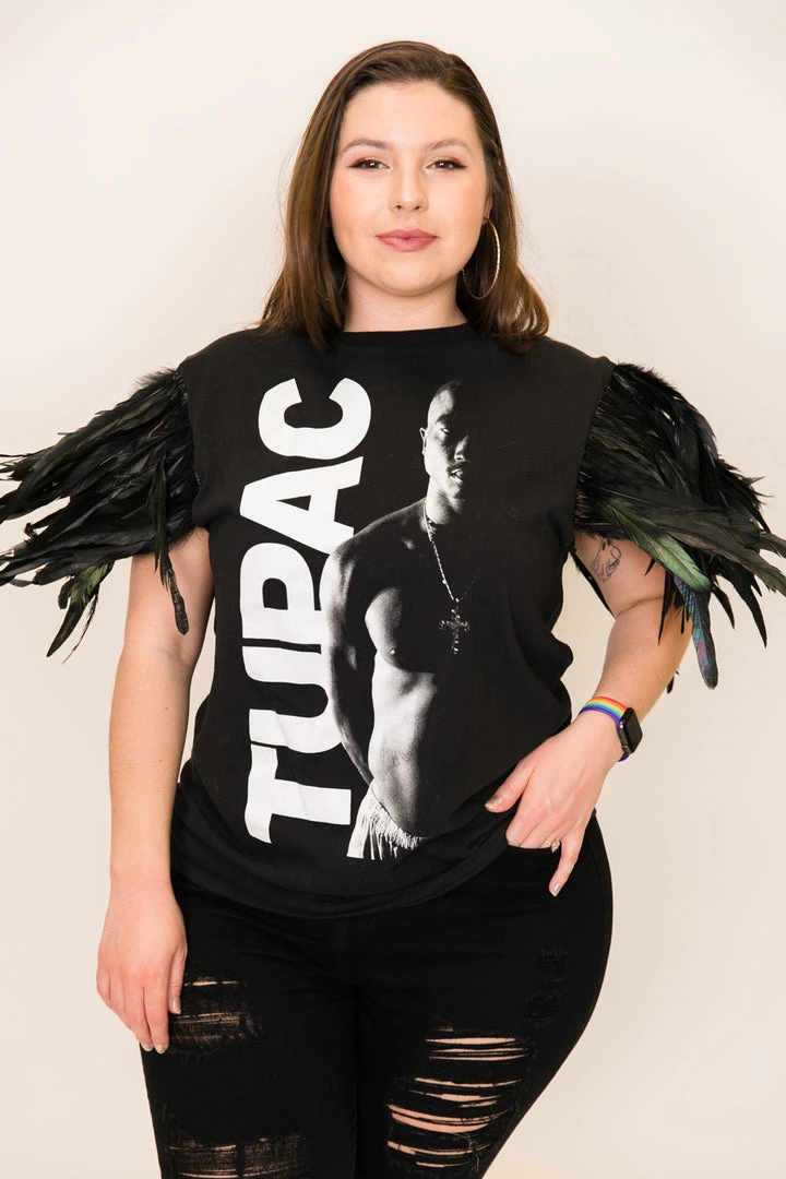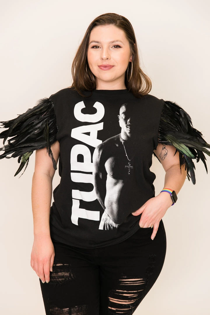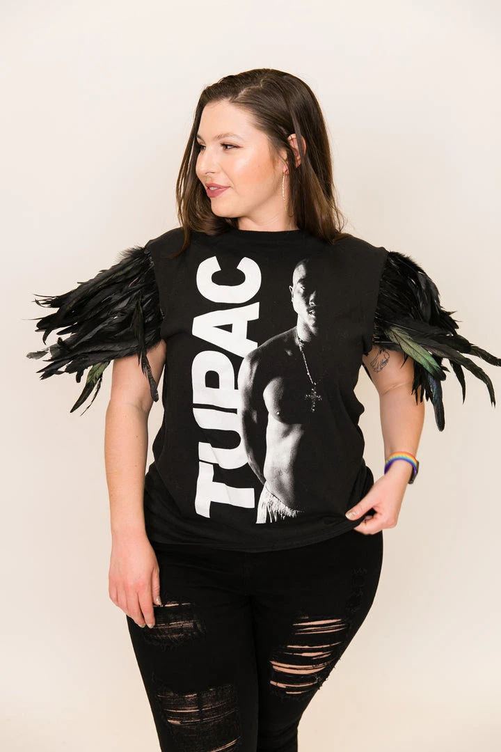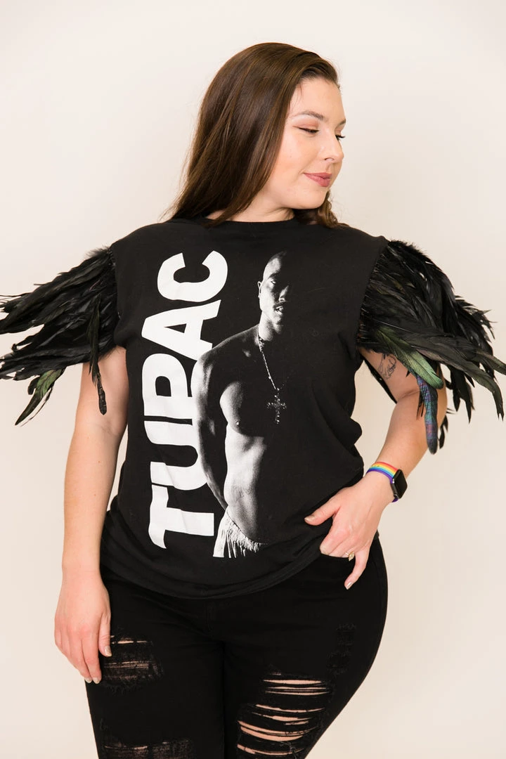 Our one of a kind party tee  -Tupac feather party tee. T-shirt is made of cotton.Â