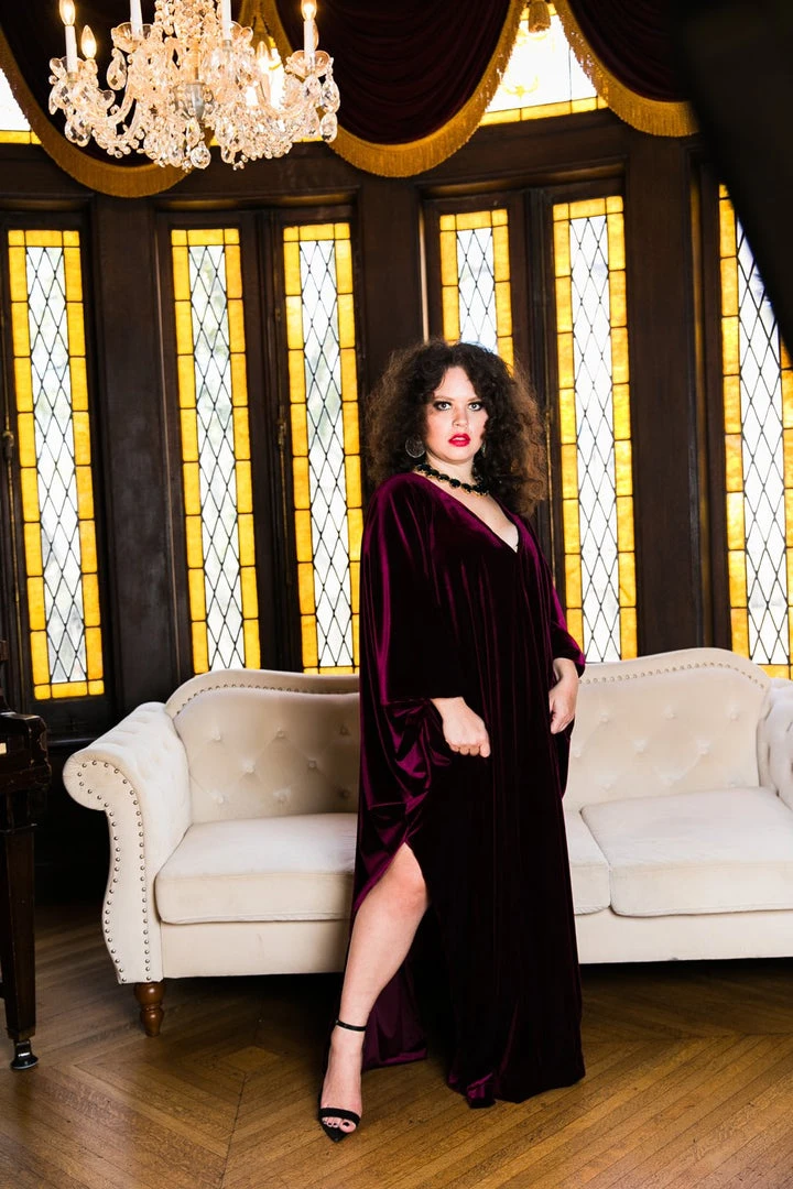 Fringe Co Black Flocked Embroidered Short Caftan Caftan Club Collection
